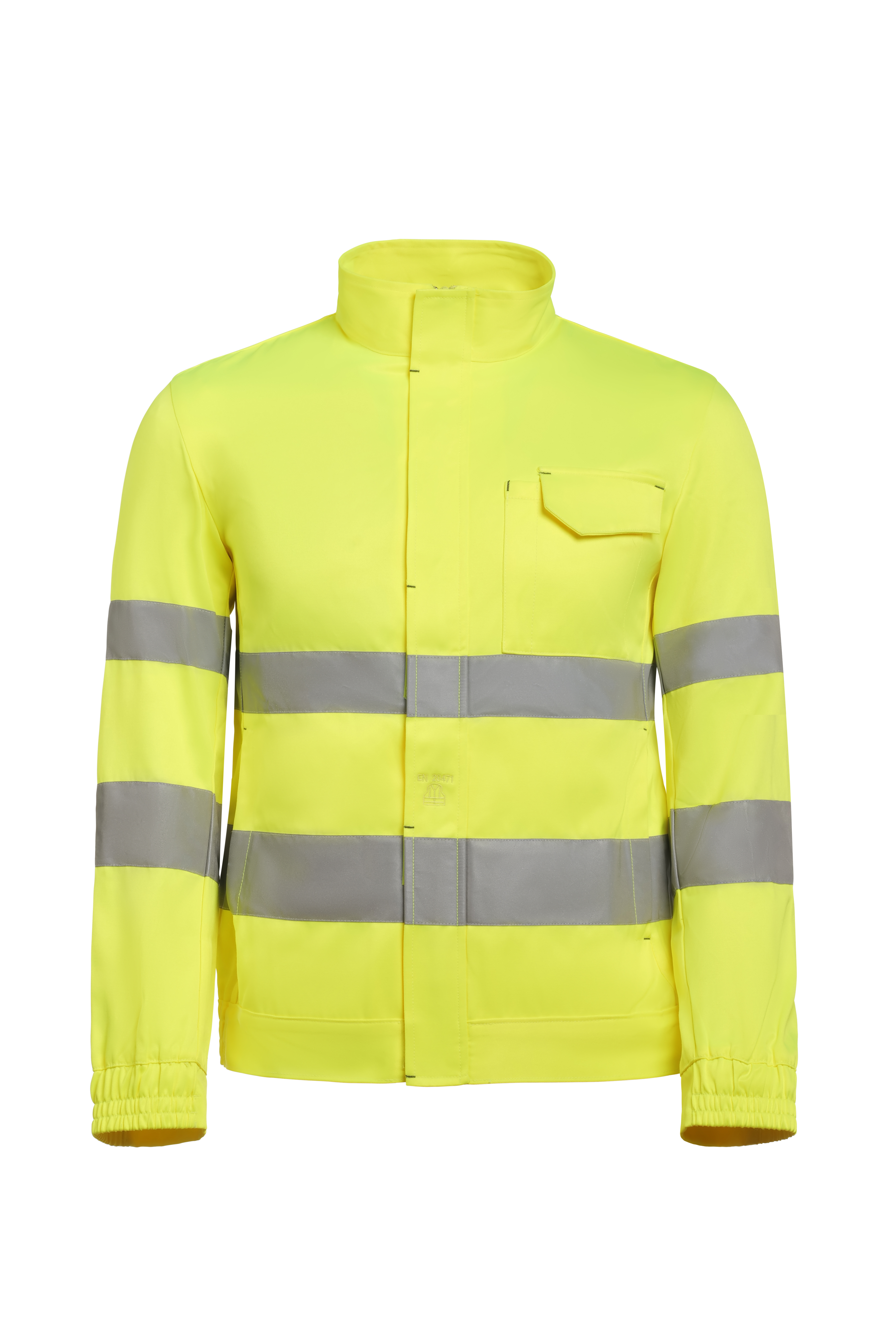 UNI EN ISO 13688UNI EN ISO 20471 Classe 3Collo alla CoreanaApertura anteriore chiusa con zip e 4 pezzi di velcro, coperti da pattaUn taschino al petto con pattina chiusa da velcroDue tasche a filetto laterali chiuse con un pezzo di velcro centralePolsini regolabile con semi elasticoFondo del giubbotto con elastici laterale per un maggior comfort e vestibilitàDue bande che circondano completamente il toraceDue bande che circondano completamente la manicaPittogramma UNI EN ISO 20471 tono su tonoBartacks in colore a contrasto