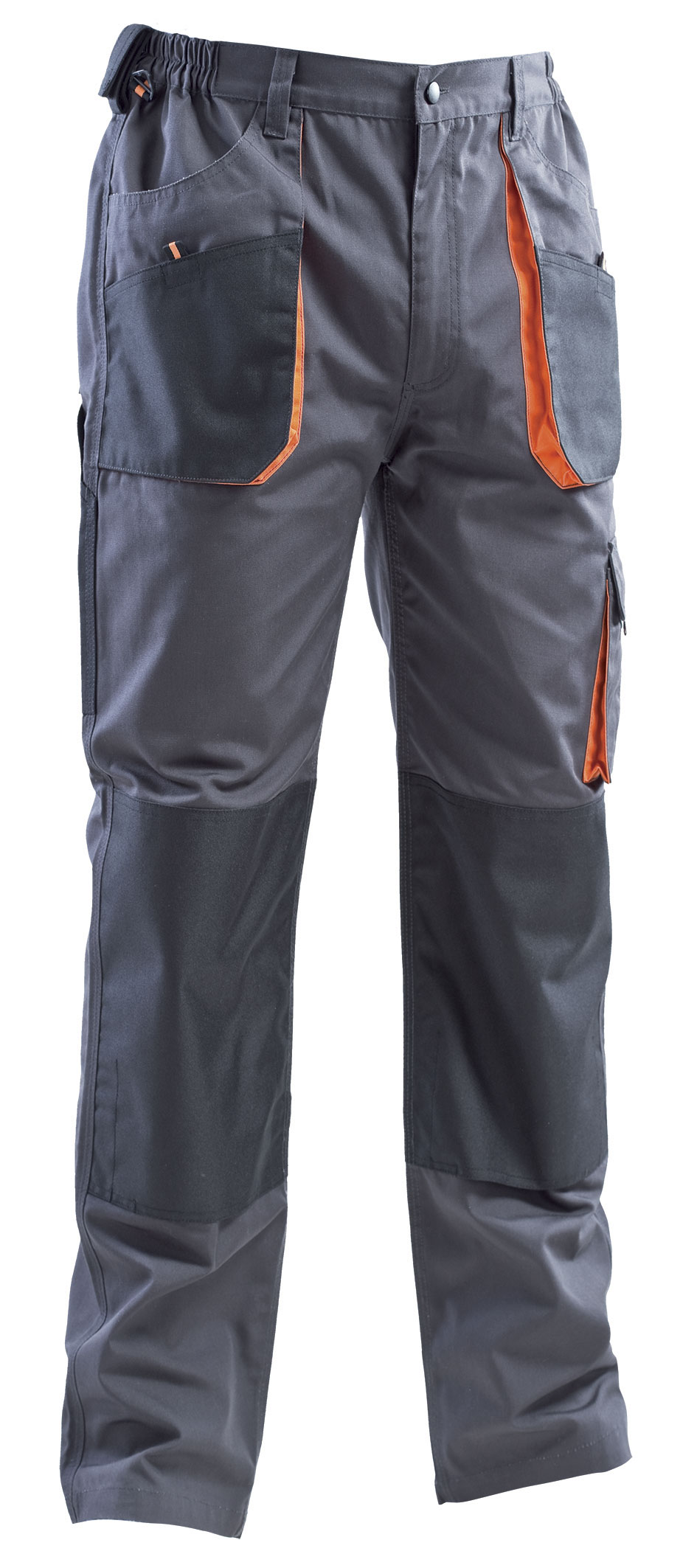 Norma di riferimento: UNI EN ISO 13688 CE prima categoria. Tessuto: poliestere/cotone 65/35 canvas da 270 gr/mq Colore disponibile: 50 (come il precedente) descrizione profili e soffietti in contrasto di colore arancione rinforzi neri in nylon sulle tasche e sulle ginocchia elastico ai fianchi portamartello in nylon a sinistra velcro in vita lato destro per attacco borsa attrezzi e gancio chiusura anteriore con cerniera coperta e bottone 2 tasche anteriori con controtasca chiusa con velcro 2 tasche posteriori con pattina chiusa con velcro 1 tasca portametro in nylon nero a destra 1 tascone con soffietti in colore arancione a sinistra, patta chiusa con velcro portaginocchiere rinforzate in nylon nero con apertura per inserimento protezione doppie cuciture nei punti di maggiore sforzo taglie disponibili: dalla S alla 3XL