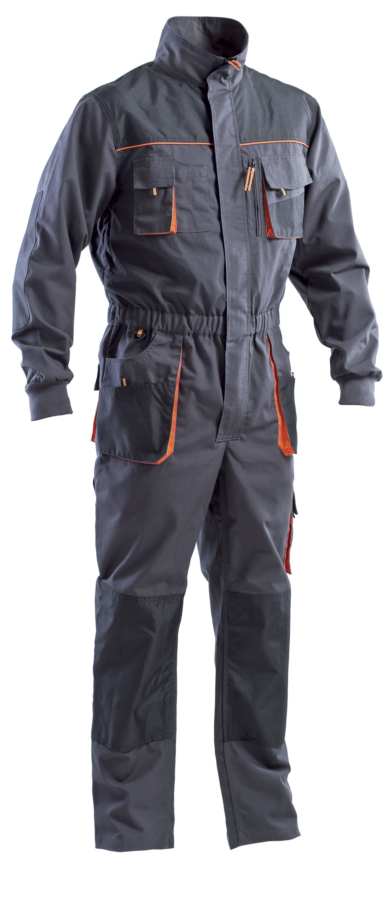 Norma di riferimento: UNI EN ISO 13688 CE prima categoria. Tessuto: poliestere/cotone 65/35 canvas da 270 gr/mq Colore disponibile: 50 (come il precedente) descrizione profili e soffietti in contrasto di colore arancione rinforzi neri in nylon sulle tasche e sulle ginocchia profili e soffietti in contrasto di colore arancione coda di topo colore arancione nel carrè posteriore rinforzi neri in nylon sulle spalle, gomiti e tasche collo a camicia chiuso con velcro apertura con cerniera e rete traspirante sotto le ascelle chiusura anteriore con cerniera coperta e velcro 2 tasche al petto con portatelefono e doppio portapenna 2 tasche inferiori aperte con controtasca chiusa con velcro polsini con maglina elastica elastico in vita anteriore e posteriore portamartello in nylon a sinistra 2 tasche anteriori con controtasca chiusa con velcro tasca portametro in nylon nero a destra 1 tascone con soffietti in colore arancione a sinistra, patta chiusa con velcro portaginoc